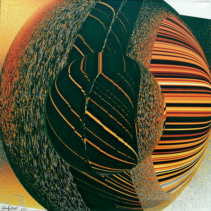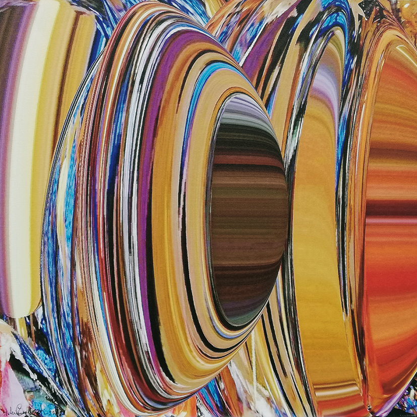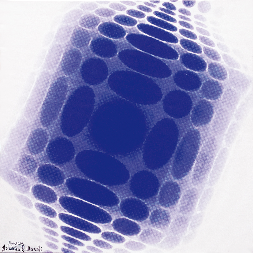 Adriana Collovati, risiede a Teor in provincia di Udine, e da sempre è attenta ai significati profondi dell’esistenza umana. Dopo aver utilizzato per molti anni, con sapienza, il linguaggio pittorico, ultimamente esprime la sua creatività anche attraverso la fotografia. Le sue immagini rielaborate, inizialmente in bianco e nero, nel tempo hanno seguito un’evoluzione naturale, frutto di sperimentazioni cromatiche dalla resa impeccabile, mai banali, ma ricercate. Le sue creazioni denotano una dinamicità nel cogliere la verità di ogni singolo oggetto, che viene elaborato fino a raggiungere la sua vera essenza. Il cerchio, ad esempio, rappresenta la perfezione dell’infinito e quindi il mistero della creazione interpretato in maniera sublime. Non solo. È anche un simbolo planetario, vessillo di completa armonia e perfezione, di controllo e proporzione, raffigurato da Kandinskij come una delle figure dominanti della sintesi dei maggiori contrasti: modernità e universo. Più si elimina la forma organica, più l’elemento astratto risuona. La cifra stilistica di Collovati è un intreccio di spazi circolari che si concretizzano in maniera armoniosa. Un insieme di simboli concentrici si dissolvono nelle vibrazioni delle trasparenze.