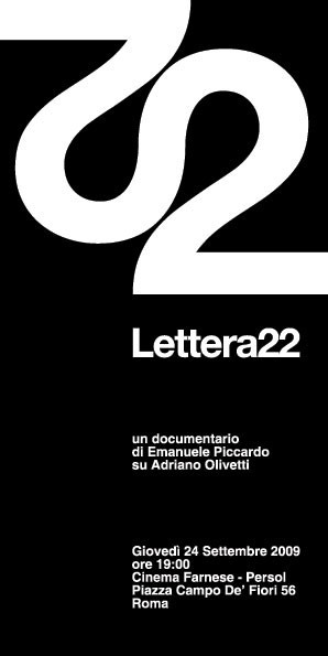 Lettera22 è il film documentario su Adriano Olivetti, un industriale, un politico, un urbanista, un'intellettuale che ha segnato con la sua opera la storia del nostro paese. Adriano Olivetti ha contribuito per un trentennio alla formazione della classe dirigente italiana. Il suo pensiero, i suoi scritti e le sue opere sono state e sono tuttora all'avanguardia in Italia e nel mondo.