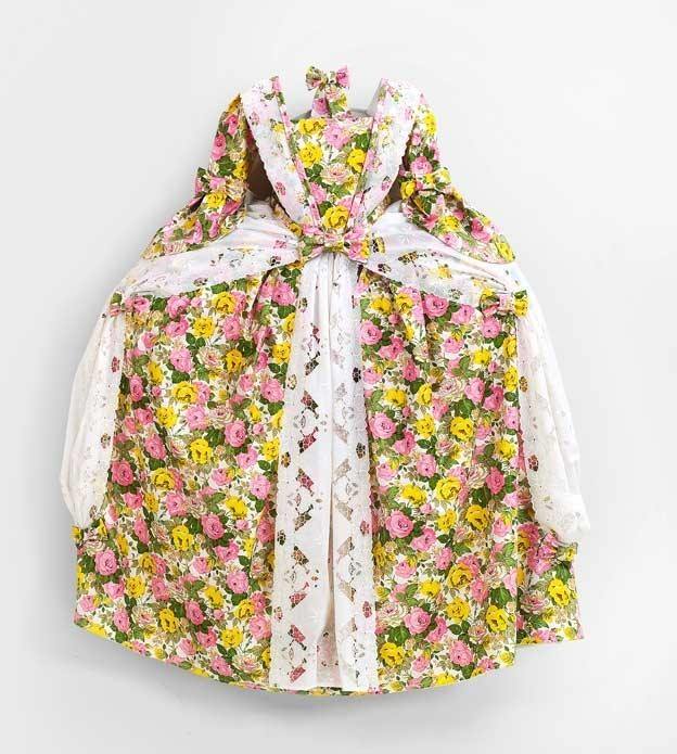 L'immaginario dell'artista è una dispensa di fantasie: può far pensare a broccati da toelette (nell'uso che fa degli asciugamani tessendone insieme gli arabeschi e le diverse grane), balli (dark) delle debuttanti e funebri passamanerie.