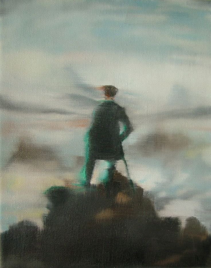 Dall’altra parte, troviamo invece lavori che rivisitano l’idea di contemplazione della natura e di anelito all’infinito. L’olio su tela di Robyn Penn (Pretoria, 1973) “Pause. (Homage to Friedrich)” è un lavoro che interroga la nozione di autenticità dell’opera, attraverso il recupero di forme e immagini antiche ormai appartenenti all’immaginario collettivo. La Penn si appropria, con il desiderio di rendergli omaggio, di una delle icone dell’estetica romantica spingendo a riflettere su una ri-attualizzazione di quel senso del sublime misto a dubbio che stringe l’uomo di fronte alla potenza della natura. Luca Coclite (Cagliano del Capo, Lecce, 1981) invece, attraverso la sua video-animazione, "Final Tourist Info for Provisional Mountais", accompagna l’osservatore in un viaggio aereo su nature utopiche ricostruite in base ad immagini recuperate da un vecchio almanacco geografico dell'ex Jugoslavia e trattate con filtri che ne estrapolano delle sequenze per sovrapporle ad altre porzioni di panorama fino ad arrivare a una completa destrutturazione del paesaggio.