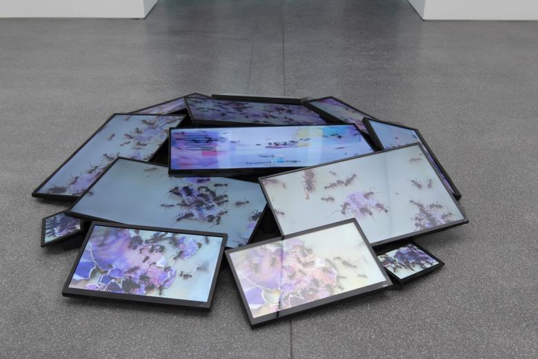 L'installazione “Thousand” è costituita da diversi schermi ammucchiati sul pavimento, a guisa di formicaio, che mostrano delle formiche che tagliano e divorano la banconota da mille franchi svizzera che tra l’altro recava rappresentato proprio questo insetto. "Noi sappiamo che il denaro non può essere distrutto perché appartiene alla Banca Nazionale. Ma perché allora – si chiede l’artista- abbiamo la presunzione di distruggere esseri viventi come le formiche?"