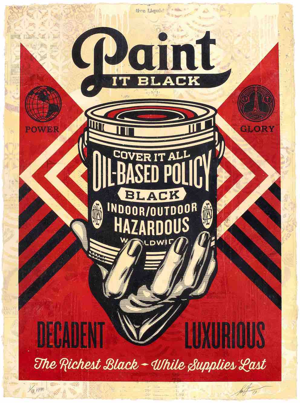 ‘Against the tide’ è il titolo dell’esposizione formata da diciotto opere ricercate,tra collage, serigrafie, HPM su carta e copertine di vinili. Il visitatore potrà compiere un viaggio visivo che stimola riflessioni su temi di grande attualità: dalla discriminazione razziale al consumismo, dalla disparità di genere alla devastazione ambientale, argomento quest’ultimo che trova ideale rappresentazione in“Paint it Black”, tra le opere più significative della mostra. Il linguaggio dell‘artista si fonda quasi tutto sul “già visto”, avendo interiorizzato non solo la lezione della pop art ma anche quella del linguaggio pubblicitario e della propaganda politica.