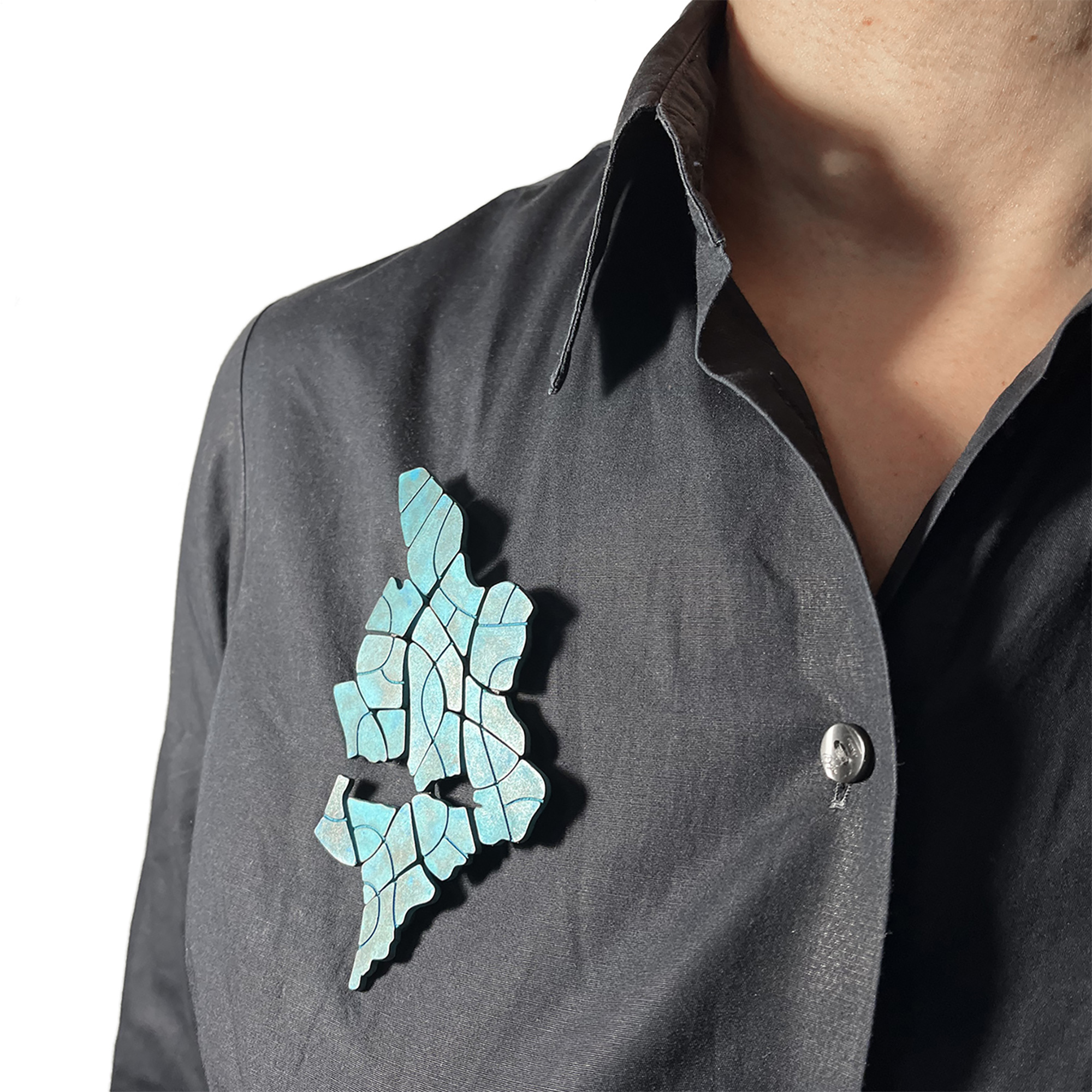 Tra gli autori in mostra, le immagini qui pubblicate sono relative alle opere di Ylenia Deriu (spilla Cabinet of curiosities), Yoko Takirai e Pietro Pellitteri (spilla Tondo Blu), Simona Materi (bracciale Imaginary mountain), Ariel Lavian (collar), Caterina Zucchi Studio Zerovetro (collana Brina), Fluxis (spilla Med Shards)