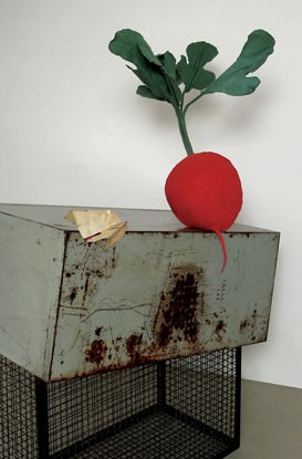 Ecco che Lorenzo Lupano (Roma, 1970) si traveste da testa di Rapa (Raphanus sativum).