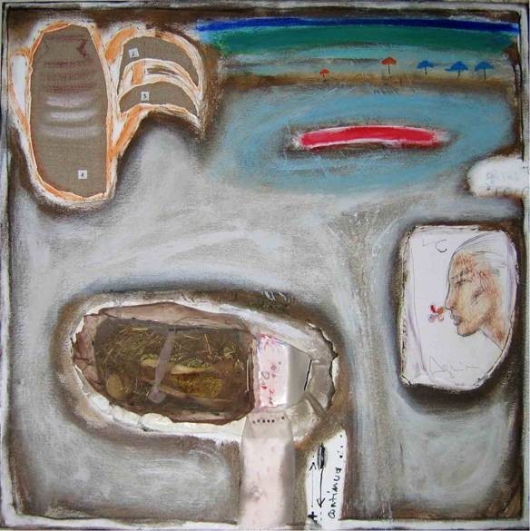 Le tele in mostra evocative, struggenti, fanciullesche, pulsanti di emozioni, ricordi, richiami creano un percorso simbolico di un viaggio tra spazio, tempo, culture.