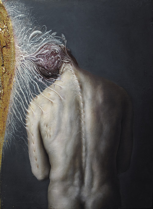 La sorprendente imagerie proposta da Arrivabene trova sostegno in una tecnica realizzativa raffinatissima, che si fonda su un equilibrio perfetto tra un'innata esuberanza pittorica, una meditata ricerca sulle procedure esecutive dei grandi maestri del passato e il coinvolgimento a fini espressivi di materiali puri, palpitanti, che si innestano nell'ingegno creativo dell'artista a volte con metodo, a volte con ricercata casualità. Sullo sfondo di questo intreccio tra pittura che sa pulsare come elemento vivo e materia naturale che si anima e crea come sotto impulso di una volontà sfuggevole, pare di scorgere quella concezione unificante del mondo artificiale e naturale già molto cara a Leonardo, che non a caso è uno dei più importanti riferimenti non solo della formazione, ma dell'intero operare di Arrivabene.