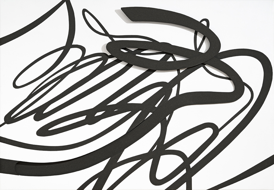 Il segno, lungamente complice dell’artista e strumento principe di ogni sua implicita “narrazione”, anche autobiografica, diventa adesso l’esploratore cui è consentito immergersi ed emergere da uno squarcio nero, più o meno presente o addirittura incombente nella superficie del quadro. In questo modo il segno, una linea continua mobile attraverso vari livelli di profondità che caratterizzano la superficie, sempre ben visibile e flessuoso, plastico e dinamico agisce da mediatore fra la dimensione oscura e invisibile, posta illusoriamente “dentro” al quadro, e lo spazio immanente, apparentemente “davanti” al quadro, in una luce piena che è anche quella dello spettatore.