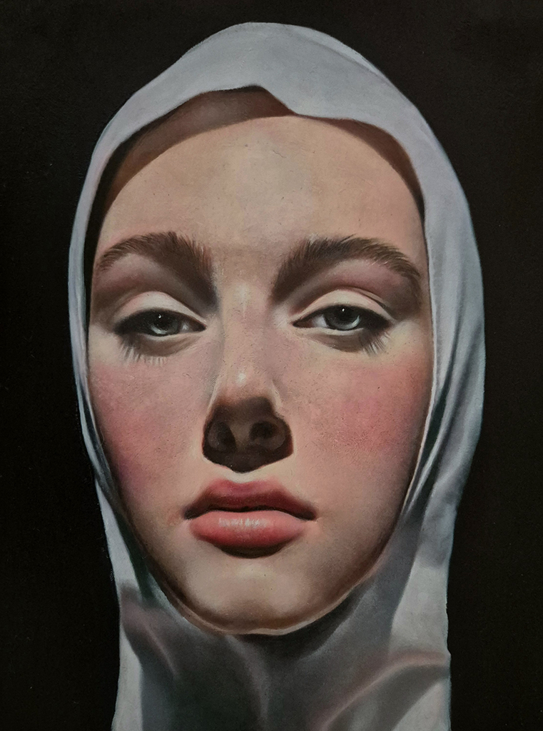 L'apparente staticità dei volti rappresentati svela un'intensità sorprendente, in cui la resa della pelle