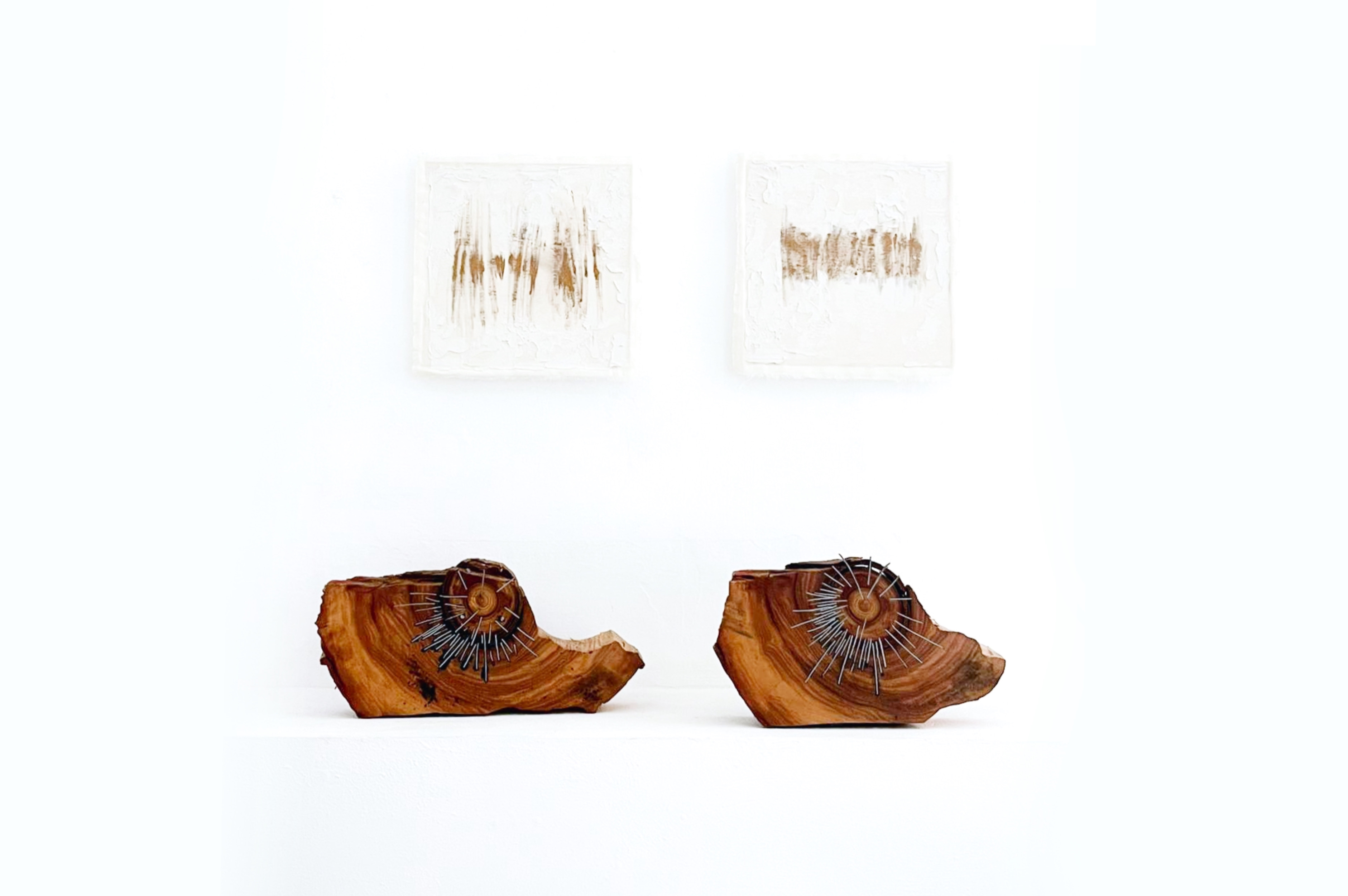 Le forme poetiche essenziali, quasi primordiali di Jacopo Mandich, segnate della forza del fuoco in cui affonda il metallo, nella materia visceralmente avvinte, trattengono l’emozione in una dimensione in cui la memoria, la conoscenza animica e l’intuito rimangono impressi nell’attimo della loro eterna creazione. Un linguaggio scultoreo, quello di Mandich, generato da contrasti armonici, da contravvenzioni alla logica dei materiali che si palesano davanti ai nostri occhi in una simbiotica osmosi.