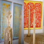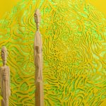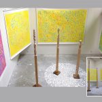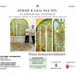 “L’armonia tra i due stili apparentemente opposti di Achao e Lars von KFL, dove fluidità e saldezza costituiscono l’opposto complementare, è immediatamente visibile, la loro vicinanza elettiva svela l’alchimia dell’antitesi, della contrapposizione che va a generare la perfezione della circolarità, l’alternarsi vitale che forma l’essenza stessa della vita. Non solo, attraverso il legame con civiltà millenarie, quelle orientali Achao e quelle occidentali e oceaniche Lars von KFL, appiattiscono la linea temporale mostrando quanto persino il presente più pragmatico, la società contemporanea tanto lontana dai valori mistici, possa trovare un sollievo e un nuovo senso proprio riscoprendo il contatto con tutto ciò che in fondo l’anima chiede. La sintonia tra le forme trasparenti e in costante fluttuazione di Achao e i totem primitivi di Lars von KFL fuoriesce chiaramente, quasi le sculture costituissero una protezione, dall’alto della loro sottigliezza solida, nei confronti di un’interiorità che necessita invece di straripare dalla tela al punto di non aver bisogno di telaio perché ogni tipo di contenimento sarebbe una limitazione al galleggiare delle forme circolari, tondeggianti, ovoidali e frammentate che sembrano danzare evocando la fecondità della natura, il suo sbocciare per generare nuova vita.”