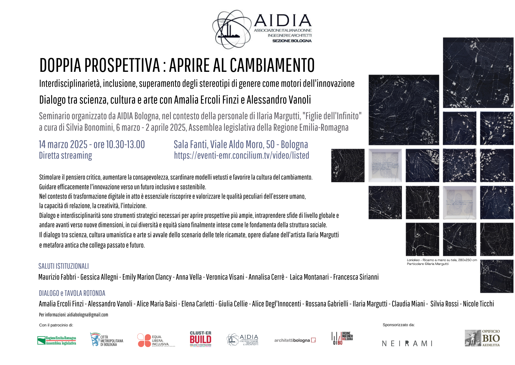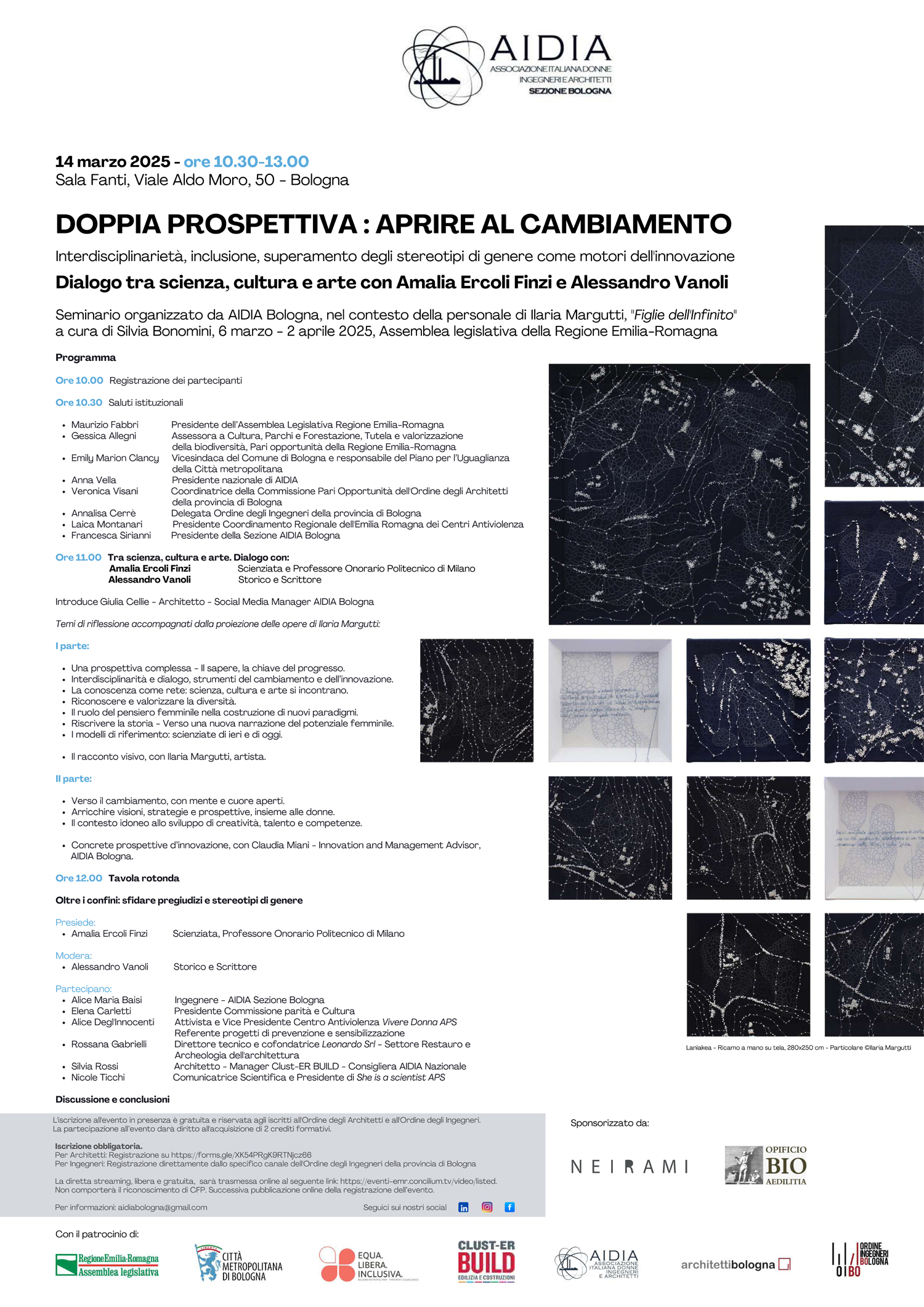 Iniziativa organizzata dalla Sezione AIDIA di Bologna collegata alla personale di Ilaria Margutti, "Figlie dell'Infinito" a cura di Silvia Bonomini, in esposizione all’interno degli spazi dell'Assemblea Legislativa dal 6 al 24 marzo 2025.