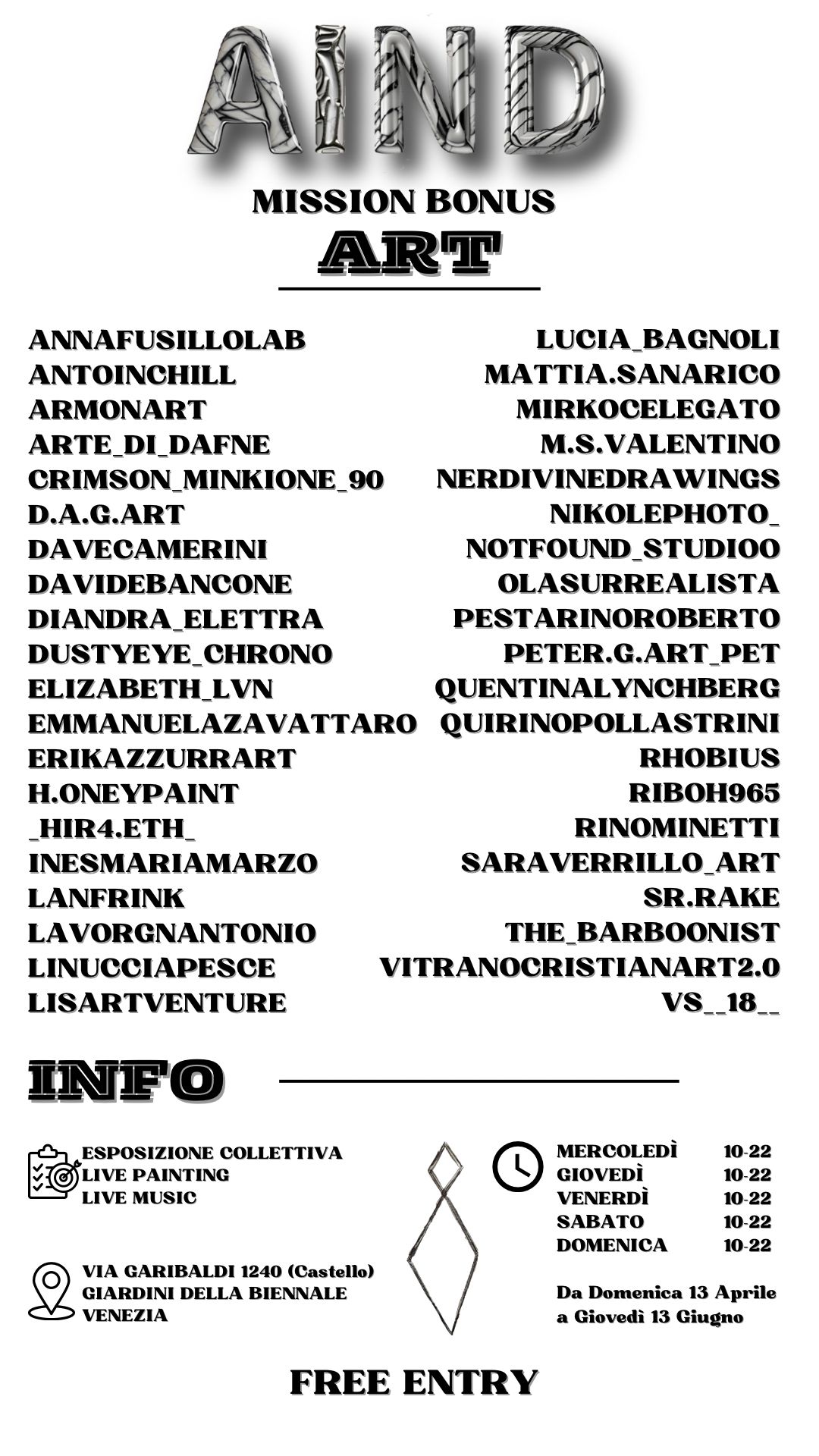 La mostra Collettiva ‘Art Is Not Dead ‘ si terra’ nello spazio di Via Garibaldi 1240 a Venezia ( zona Giardini della Biennale) lungo due mesi dal 13 Aprlie al 13 Giugno 2025