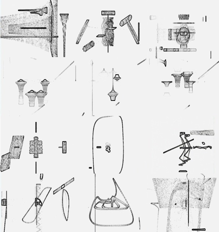 Eva Marisaldi (1966) presenta una riflessione sul caso attraverso un video, Cornucopia, in cui una serie di suoni prendono forma come immagini in movimento proiettate a muro. Le figure così generate vengono trasformate in segni fisici: intere sequenze di frame sono raccolte in volumetti cartacei da sfogliare e partendo da queste stesse immagini l’artista realizza tappeti e accessori in stoffa nera imbottita. Il pubblico potrà interagire con gli oggetti creati dall’artista, sedersi sui tappeti per guardare il video, i disegni e i lavori degli altri artisti.
