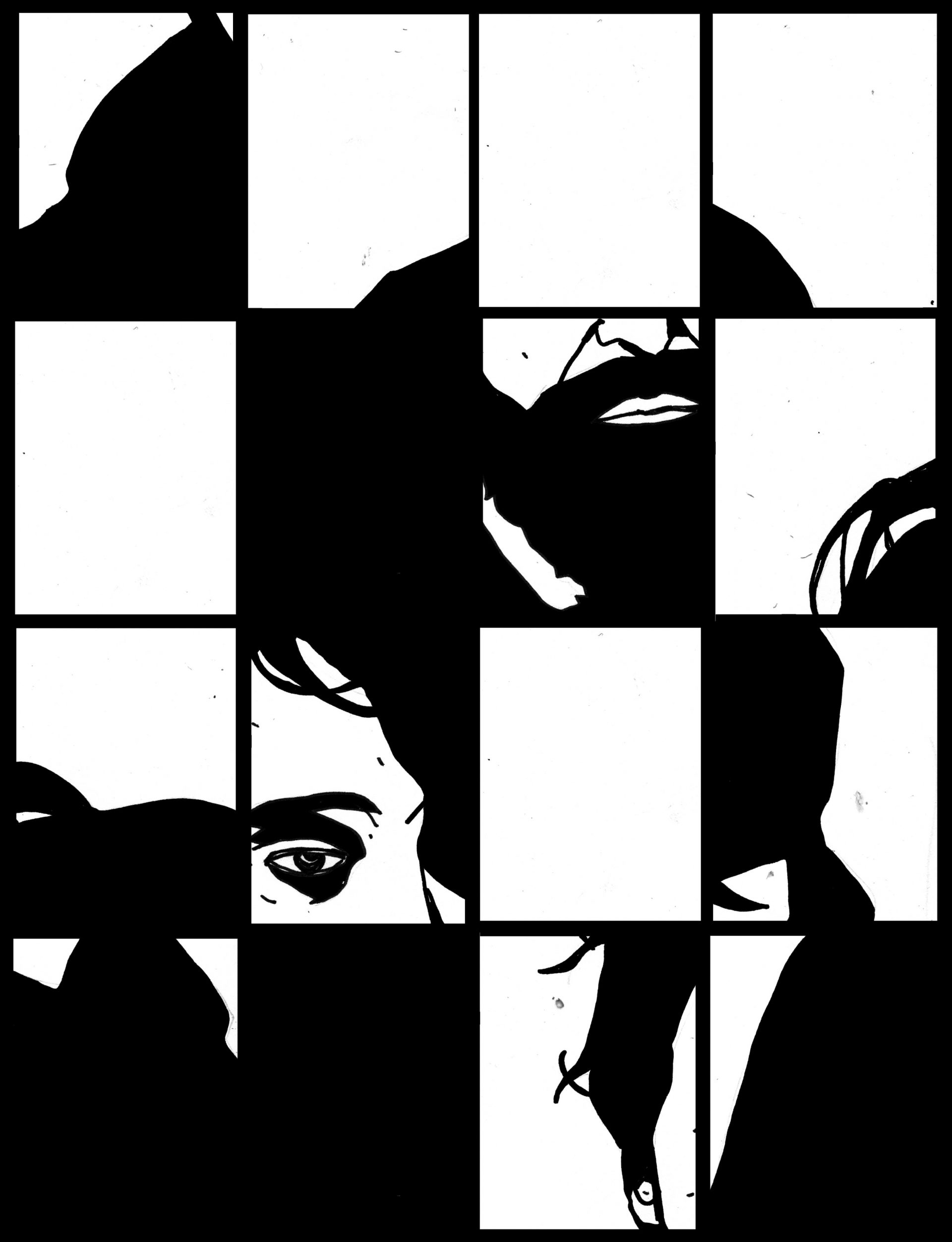 In questa ri-capitolazione, i tratti decisi, i contrasti di luci e ombre delle tavole hanno lo stesso peso del silenzio e del vuoto che le abitano e le collegano.