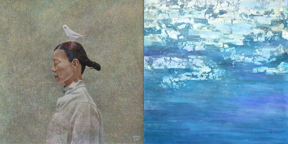 Da un lato la tecnica Nihon-ga, stile di pittura rispondente all’utilizzo di materiali e all’applicazione di norme proprie della tradizione giapponese; dall’altro la pratica della tempera all’uovo, descritta nel trattato sulla pittura di Cennino Cennini, e riproposta con metodo puntinista e divisionista.