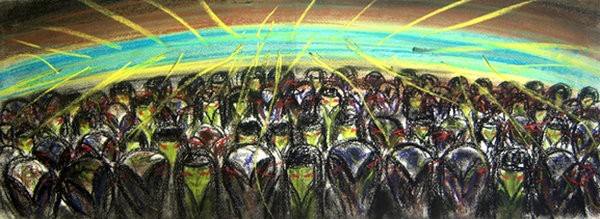 -Il Colore e' Luce. Il nostro Dna e' Luce. E' il Fluido, la linfa vitale che governa e anima l' armonia dell'atomo. Come il silenzio proiettato ed accelerato all'infinito nella sua vibrazione magnetica e molecolare- sostiene l'artista, che chiarisce il suo approccio artistico: -Nel gesto pittorico riemerge quella -Necessità e Volontà Interiore- di colare e fermare sul piano, in quel preciso istante, lo sguardo esteso all'intero cosmo pur rimanendo centrato sulla semplicità della bellezza, dell' essenza.-.