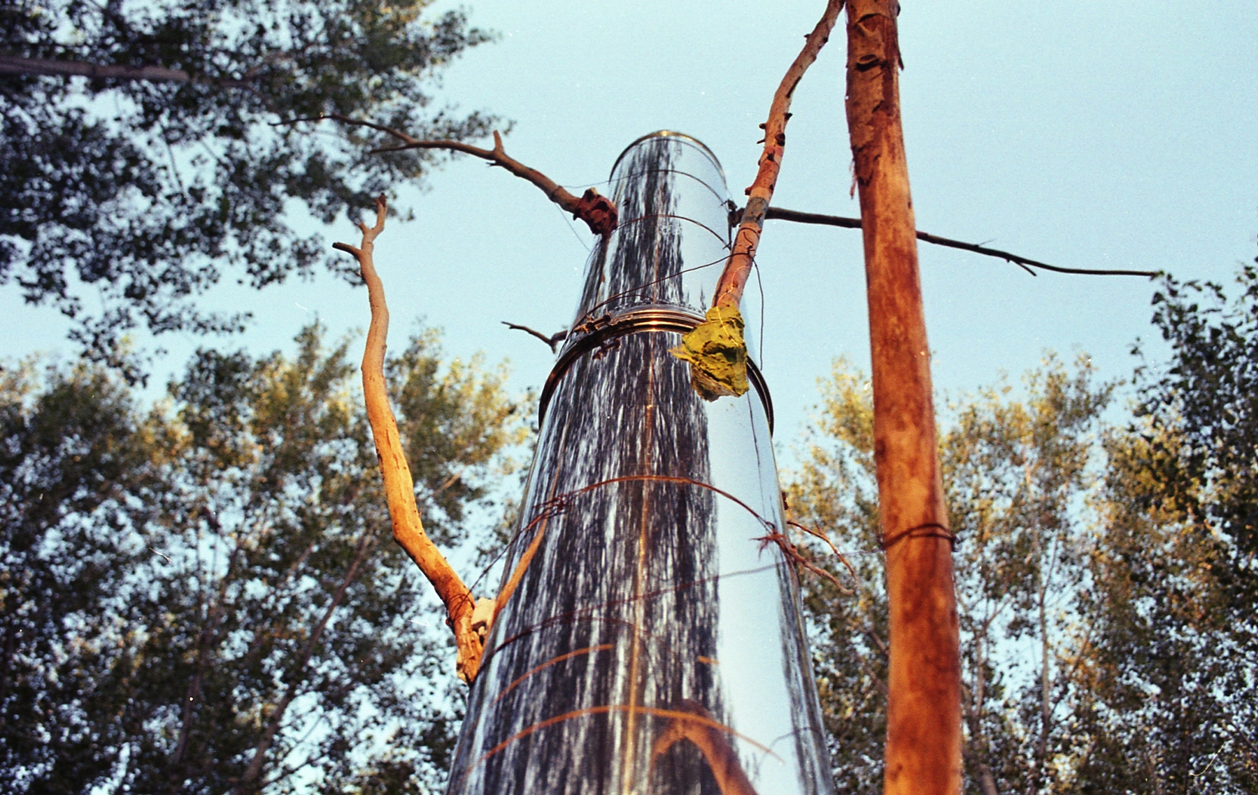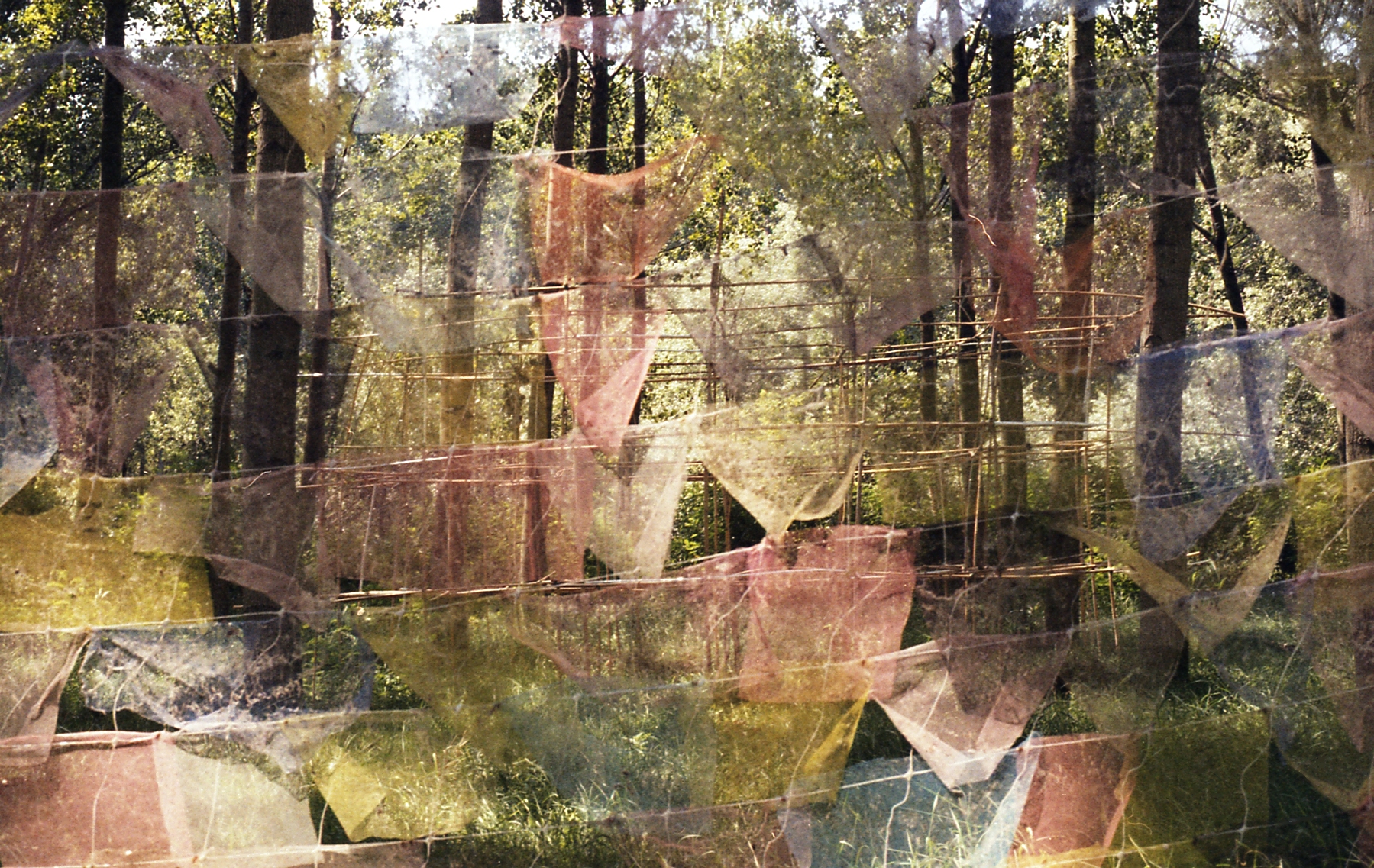 Immerso quotidianamente in questo spazio circoscritto, Alberonero ne ha accompagnato i mutamenti naturali trasformando porzioni di campo attraverso venti opere temporanee. Per ascoltare il “tempo del pioppeto”, le opere sono state abbandonate alla naturale trasformazione del luogo: a contatto con lo spazio-tempo biologico del campo sono diventate “altro”, mutando in simbiosi con esso. Oltre alle opere Alberonero ha realizzato, in collaborazione con diversi autori, fotografie, registrazioni audio e video, ha collezionato oggetti e materiali naturali rinvenuti in loco.