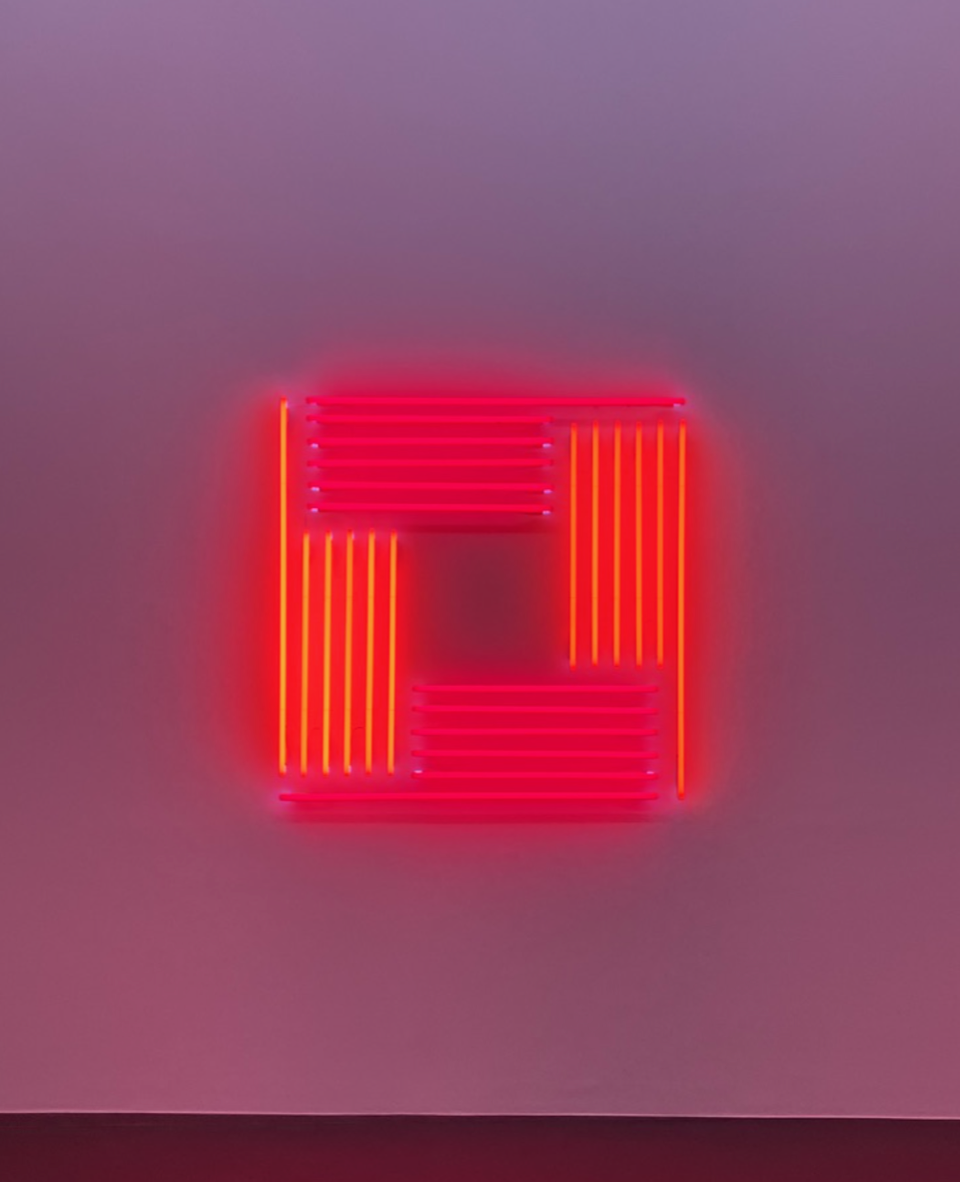 In “Intermezzo”, Albert Hien presenta due nuclei di lavori recenti in cui l’artista approfondisce il dialogo tra luce, colore e geometria. Attraverso l’uso del neon — materia viva e pulsante — Hien trasforma l’energia elettrica in linguaggio poetico, restituendo alla forma un respiro interiore.