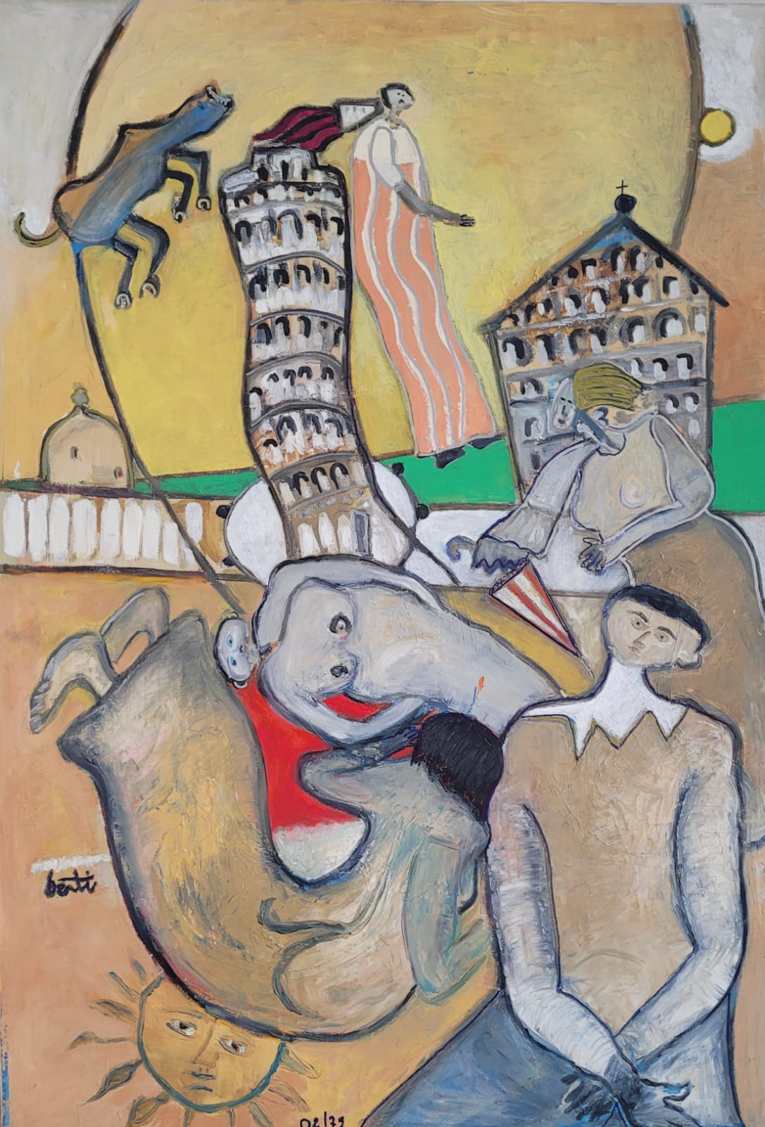 Protagonista dell’evento è Alberto Berti, pittore nato a Jasi e residente a Pisa da molti anni. La sua carriera artistica è segnata da un intenso percorso di viaggi in tutto il mondo: dall’Europa all’Asia, dalle Americhe all’Africa. Ogni tappa ha rappresentato per lui un incontro con culture, tradizioni e sensibilità diverse, che si sono riflesse nella sua pittura come frammenti di un mosaico universale. Berti ha saputo trasformare queste esperienze in un linguaggio visivo capace di unire radici italiane e suggestioni internazionali, rendendo Pisa il crocevia ideale di un dialogo artistico che supera confini geografici e temporali.
