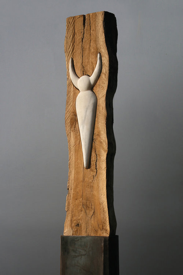 Una ricerca sui materiali ‘primitivi’, il marmo il legno il ferro, che hanno da sempre plasmato idoli, guerrieri e templi: archetipi che Durante esplora in chiave contemporanea.