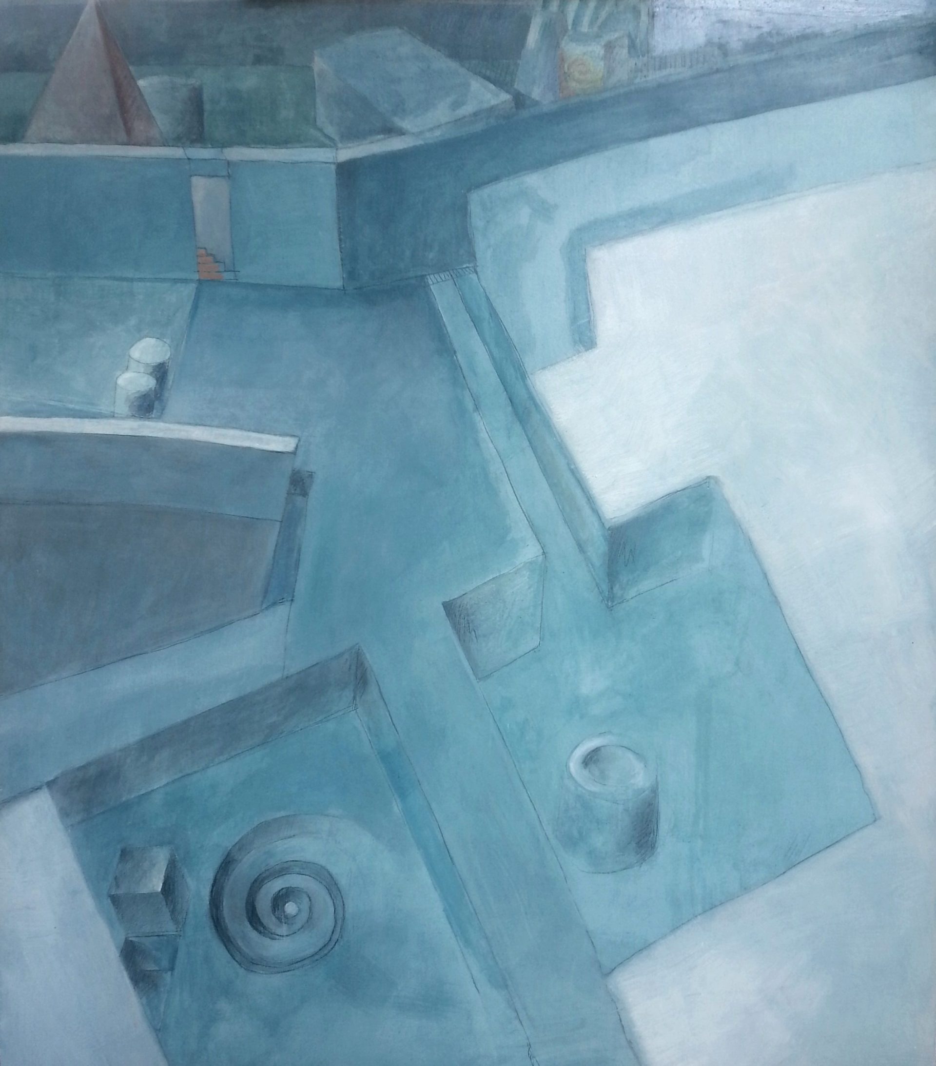 Nell’ultima produzione si accentua l’attenzione verso l’architettura: le scene industriali milanesi hanno un aspetto vuoto e dilatato, dominate dall’assenza di vita e dal silenzio più assoluto. Sono chiari i riferimenti alla Metafisica, con accenni all’arte di Sironi degli anni Venti e inizi Trenta, nella progressiva eliminazione di ogni elemento decorativo, nel senso di vuoto e solitudine, sottolineato dai colori delicati e dalle pennellate sintetiche. Le opere sono dei racconti, ricchi di simboli alchemici recuperati dal passato, assemblati in architetture senza tempo, da cui si percepisce il suono del silenzio e quell’ineluttabilità tipica del sogno. Il recupero del passato si lega alla vena contemporanea dell’artista, che si dichiara “post antico”, come aveva fatto prima di lui il celebre architetto Aldo Rossi, da cui Prina eredita il culto della geometria e della memoria.