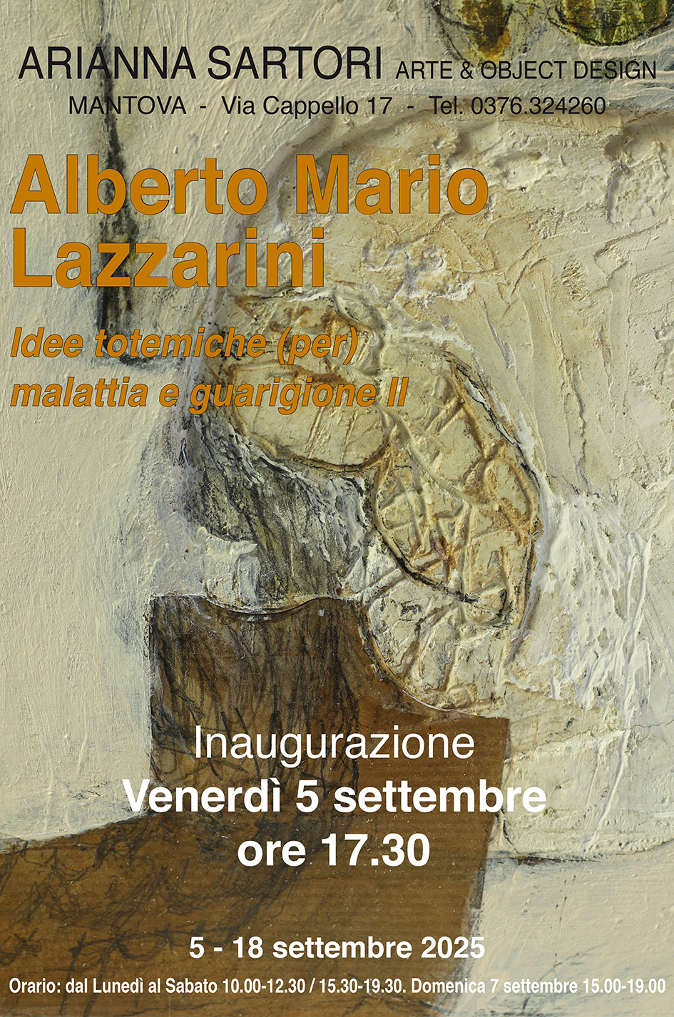“Idee totemiche (per) malattia e guarigione II” è il titolo della nuova mostra personale dell’artista Alberto Mario Lazzarini alla “Galleria Arianna Sartori” di Mantova in via Cappello 17.