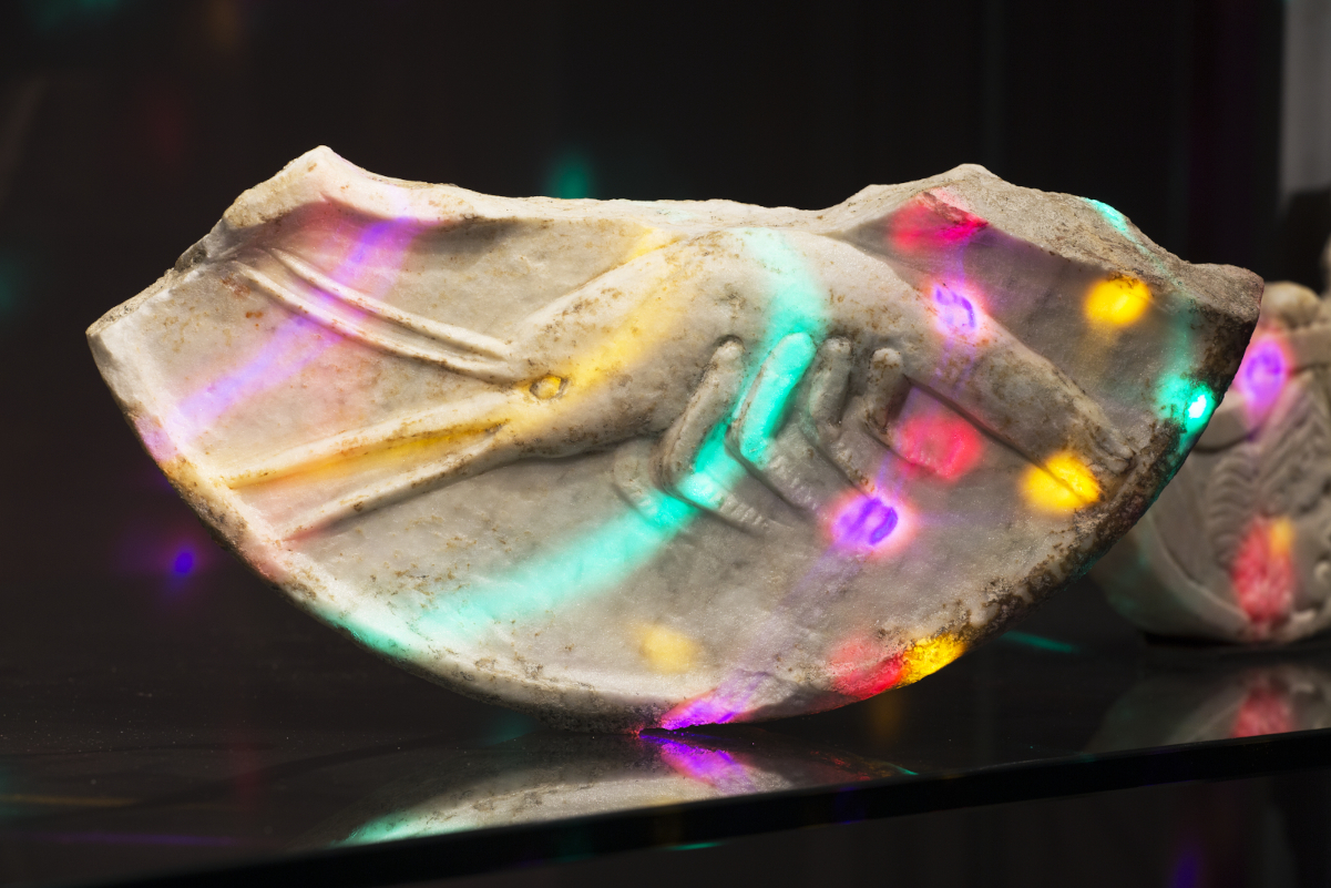 Dal 21 giugno al 31 agosto 2025, Amici Musei Acquesi e Civico Museo Archeologico di Acqui Terme presentano ECOTRANCE, un’installazione site-specific di Alberto Tadiello (Montecchio Maggiore, 1983), artista italiano che attraverso la sua ricerca indaga le relazioni tra arte, natura e tecnologia. ECOTRANCE è ispirata alla fonte d’acqua “La Bollente” che scaturisce a 75° nel centro di Acqui Terme la cui frequentazione, anche in chiave sacrale e cultuale, deve senz’altro essere fatta risalire già all’epoca pre-romana. Alberto Tadiello ne trasporta l’impatto emotivo all’interno del Museo tra i blocchi di marmo grigio dell’antica fontana del II-I secolo a.C. e crea una costruzione magica fatta di suoni e luci, “un arabesco screziato di colori in movimento che bagna le pareti, le teche, il pubblico, in un loop sincopato e vagamente ipnotico.” [A.T.]