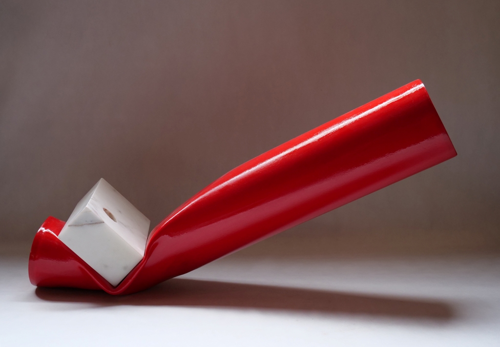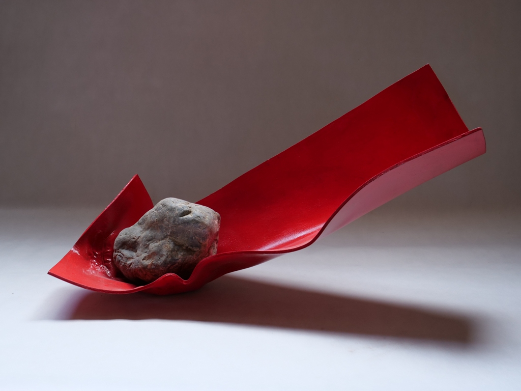 La mostra Materia d’urto presenta al pubblico una selezione di sculture di Alberto Timossi, parte di una produzione più recente in cui l’artista esplora il concetto di urto e scontro tra materiali naturali e industriali.