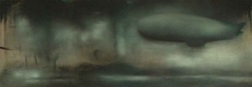 E' su un’apparente dicotomia tra il qui e ora e il passato, tra riconoscibilità e indefinibilità, tra il tempo dell'esperienza e quello del ricordo che si concentra oggi l'attenzione di Zamboni, al di là di quelli che sono i pur significativi mutamenti di ordine linguistico della sua pittura. Ne è prova lampante l'avvento, all'interno del bagaglio di immagini utilizzate dall'artista, di una figura come quella del dirigibile, che compare per la prima volta in una tela del 2003, “Il viaggio di Zambeccari”: al tempo stesso oggetto reale e apparizione fantasmatica, immagine di origine fotografica e sogno ad occhi aperti, conquista scientifica e invenzione letteraria, il dirigibile sorvola la terra, si disancora dalla terra così come la pittura di Zamboni si disancora dalla realtà, pur senza giungere al completo distacco, concedendosi ancora la visione del paesaggio sottostante e non limitandosi a quella esclusiva del cielo e delle nuvole. Questa figura, entrata recentemente nell'immaginario dell'artista, contribuisce infine a chiarire la totale soggettività di questa pittura. A ben vedere, ciò che unisce soggetti all'apparenza così diversi è, infatti, il rapporto che si instaura tra il pittore e le immagini del mondo: il fascio di luce che illumina parti della composizione; la polvere o il vetro che allontanano i soggetti; i rami e le foglie che ostruiscono la vista in “Uccelli notturni”, tutto dice che questa pittura rappresenta il tentativo di vedere il mondo da una prospettiva diversa, interponendo tra l'occhio e l'oggetto un ostacolo che modifica le apparenze, che a sua volta trasforma il mondo, allo stesso modo in cui la memoria e le emozioni agiscono sulla nostra percezione della realtà.