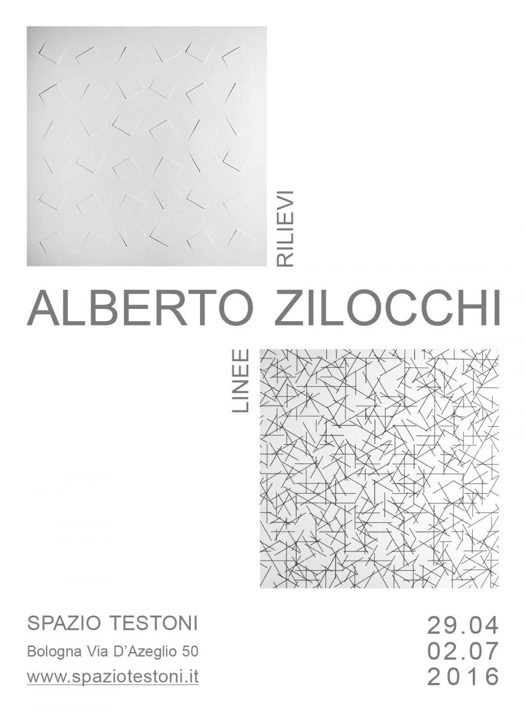 La Galleria SPAZIO TESTONI di Bologna all’interno delle sue sale in Via D’Azeglio 50, presenta la prima mostra personale di Alberto Zilocchi dopo la sua scomparsa nel 1991. L’esposizione RILIEVI E LINEE inaugura Venerdì 29 Aprile alle ore 18,30 e resterà visibile fino a Sabato 2 Luglio 2016.
