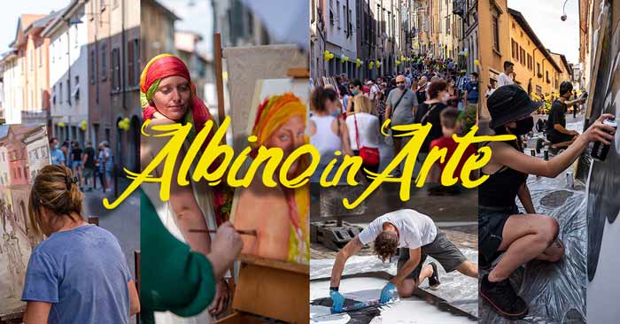 12 Giugno 2022 si tiene la terza edizione di Albino in Arte, con 80 artisti all’opera tra corti e strade del centro storico di Albino (Bergamo): pittori, scultori, disegnatori, artisti digitali, street artist, fotografi e installazioni interattive. Musica dal vivo, Performance e Street Food!