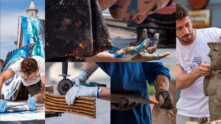 Scultura, Pittura, Disegno, Street Art, Digital Art e tante altre discipline artistiche dal vivo, installazioni interattive, teatro e performance.