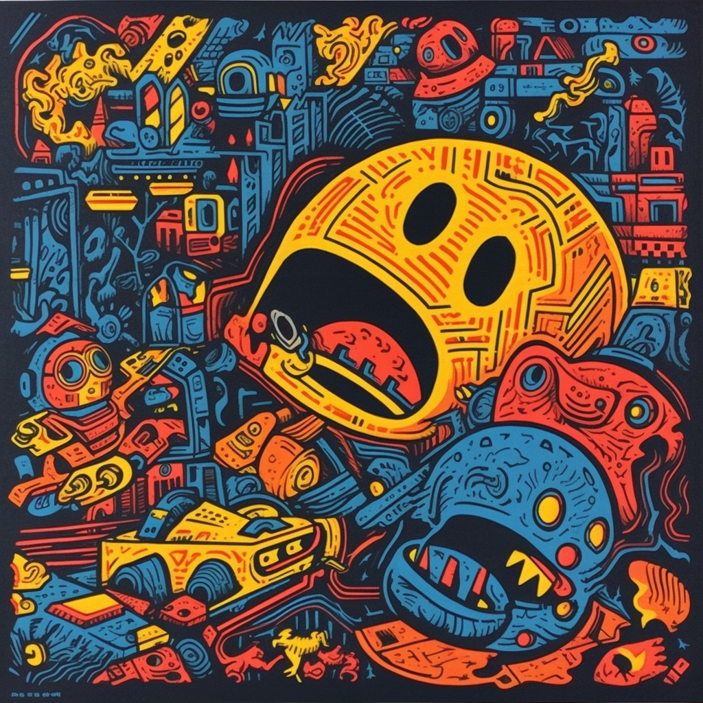 Ne è uscito un incredibile calderone di suggestioni: dai dieci comandamenti rivisitati in chiave fantascientifica ai soldati della prima guerra mondiale agghindati con improbabili armature, dai nuovi deserti causati dai cambiamenti climatici alle maschere imposteci dalle convenzioni sociali; dagli autoscatti dei dannati dell’inferno dantesco per concludere con le inedite “schermate” di un lisergico Pac-man.