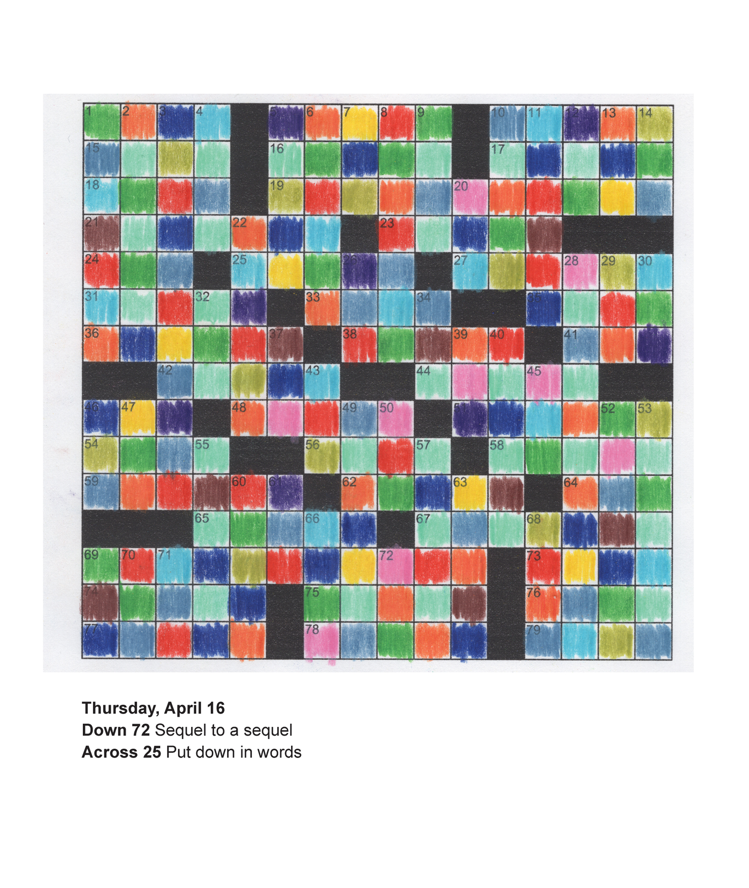 “Una serie di disegni realizzati durante i primi mesi di lockdown che testimoniano, attraverso colore e indizi forniti, un periodo di mancanza di significato apparente.”