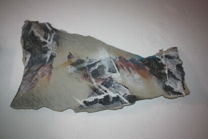 19 lacerti fatti di carta, materiali di risulta, pittura, colore a stampa, mappano uno spazio bianco disegnando una idea del vuoto che Alessandra Bonelli non teme e non assedia lasciando che invece sia esso a spogliare chi guarda di ogni sovrabbondanza cognitiva ed emotiva per accedere attraverso l’opera ad un codice di decifrabilità dell’invisibile attraverso il visibile.
