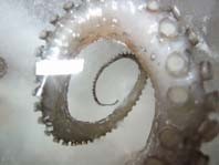Le immagini documentano sculture effimere in ghiaccio che l’artista ha preparato incastonandovi all’interno alcuni polipi. La grana larga dell’immagine si mischia con la texture del ghiaccio e la bestia sopita, il purpo, diventa eterea e dai contorni cerulei, perdendo il pigmento originario della pelle.