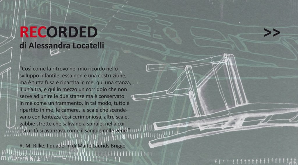 Così come la ritrovo nel mio ricordo nello sviluppo infantile, essa non è una costruzione, ma è tutta fusa e ripartita in me: qui una stanza, lì un’altra, e qui in mezzo un corridoio che non serve ad unire le due stanze ma è conservato in me come un frammento. R. M. Rilke, I quaderni di Malte Laurid