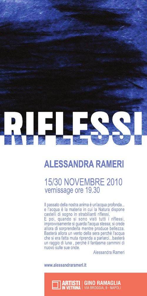 Tutta la produzione artistica di Alessandra Rameri è ispirata al territorio della città dove vive: dagli acquerelli e olii, alle opere digitali; dalle installazioni, alla produzione di incisioni con soggetti onirici, o con scorci poetici quanto realistici dei vicoli storici napoletani.
