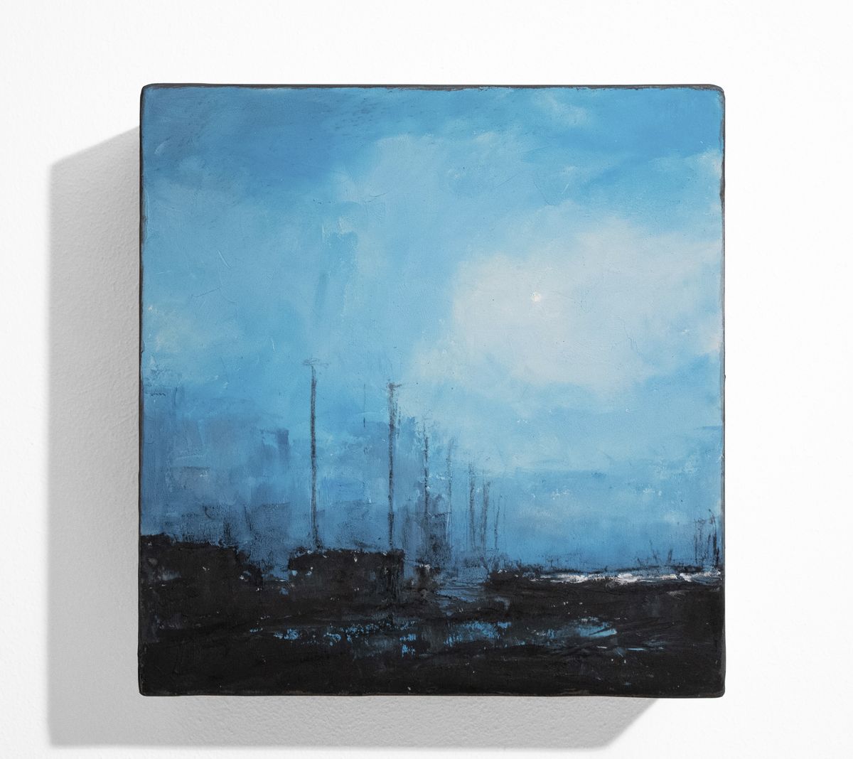 L’opera vincitrice del Premio del Pubblico fa parte della sperimentazione, partita nel 2016, che vede Alessandra Rovelli lavorare sulle Life-Box, scatole di cartone sulle quali applica la tela e una infinità di altri materiali. Una pittura dunque che diventa materica e si confronta con materiali come il carbone, la cenere, la terra e non ultimo l’alluminio.