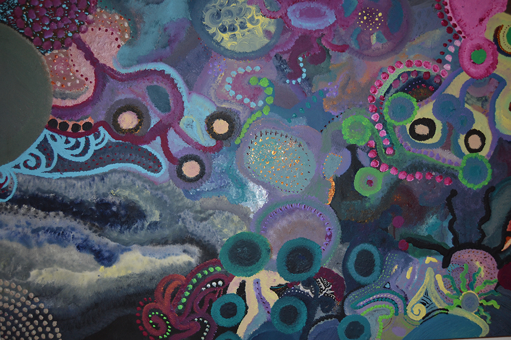 I dipinti, tutti realizzati ad acrilico su tela, mettono in luce la forza espressiva e terapeutica dell’arte: “il colore ha cominciato dolcemente ad accarezzare il mio dolore e i miei pensieri, che poco a poco hanno preso forme e dimensioni reali. Più buttavo fuori sulla tela il mondo che avevo dentro e meglio mi sentivo. Il colore mi rassicura e mi protegge anche dal pensiero dell’unica cosa che mi fa veramente una grande paura, la fine, il non esserci, il non più, il mai più”.