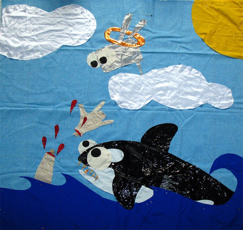 Una rivisitazione contemporanea dell’arazzo. Le stoffe di rinomati brand del mondo della moda, decontestualizzate, perdono la loro valenza ed incontrando la “povetà” della tela danno vita al quadro d’arte.