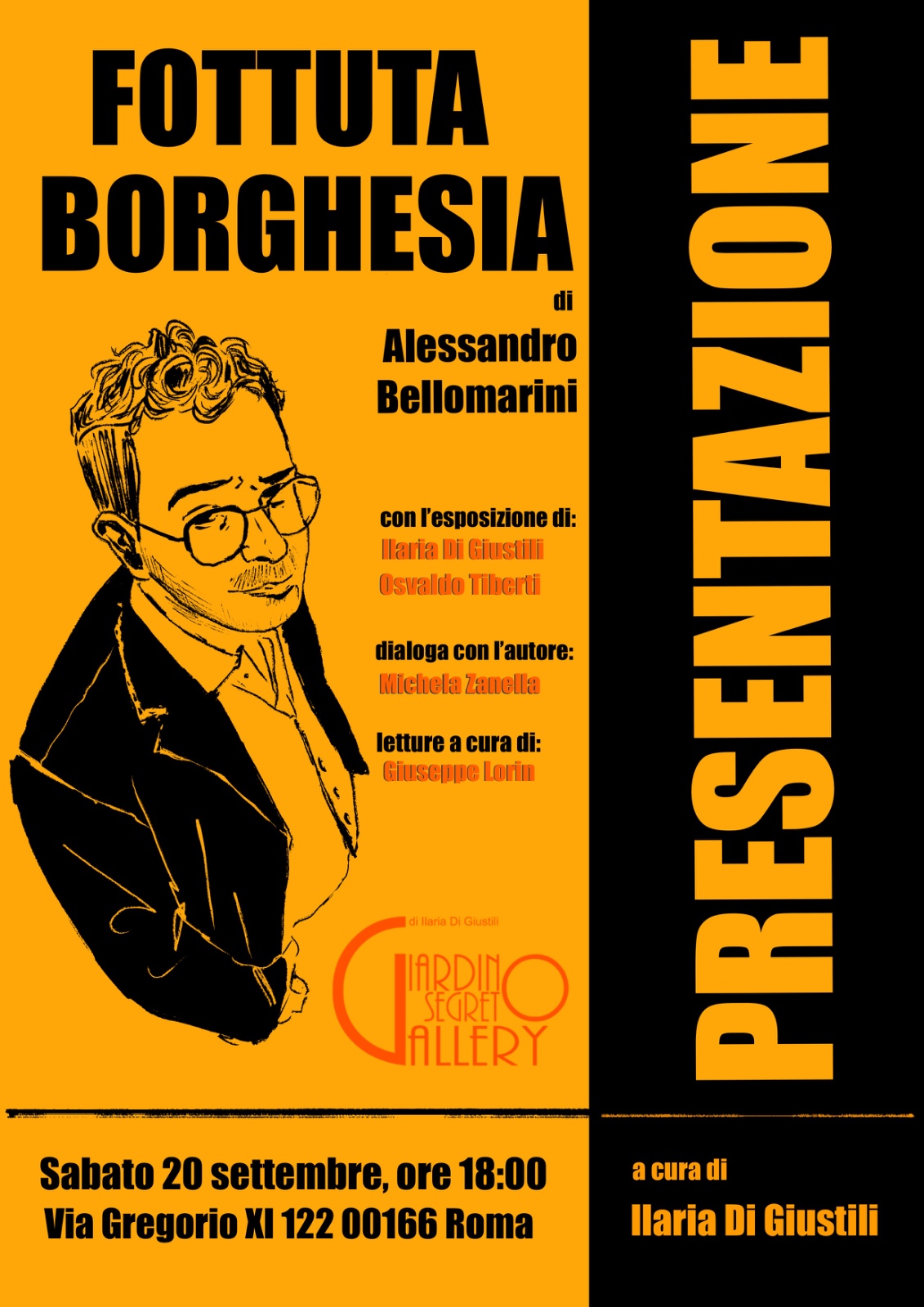 Sabato 20 settembre 2025 alle ore 18:00 Presentazione del romanzo “Fottuta Borghesia” di Alessandro Bellomarini presso il Giardino Segreto Gallery Roma di Ilaria Di Giustili