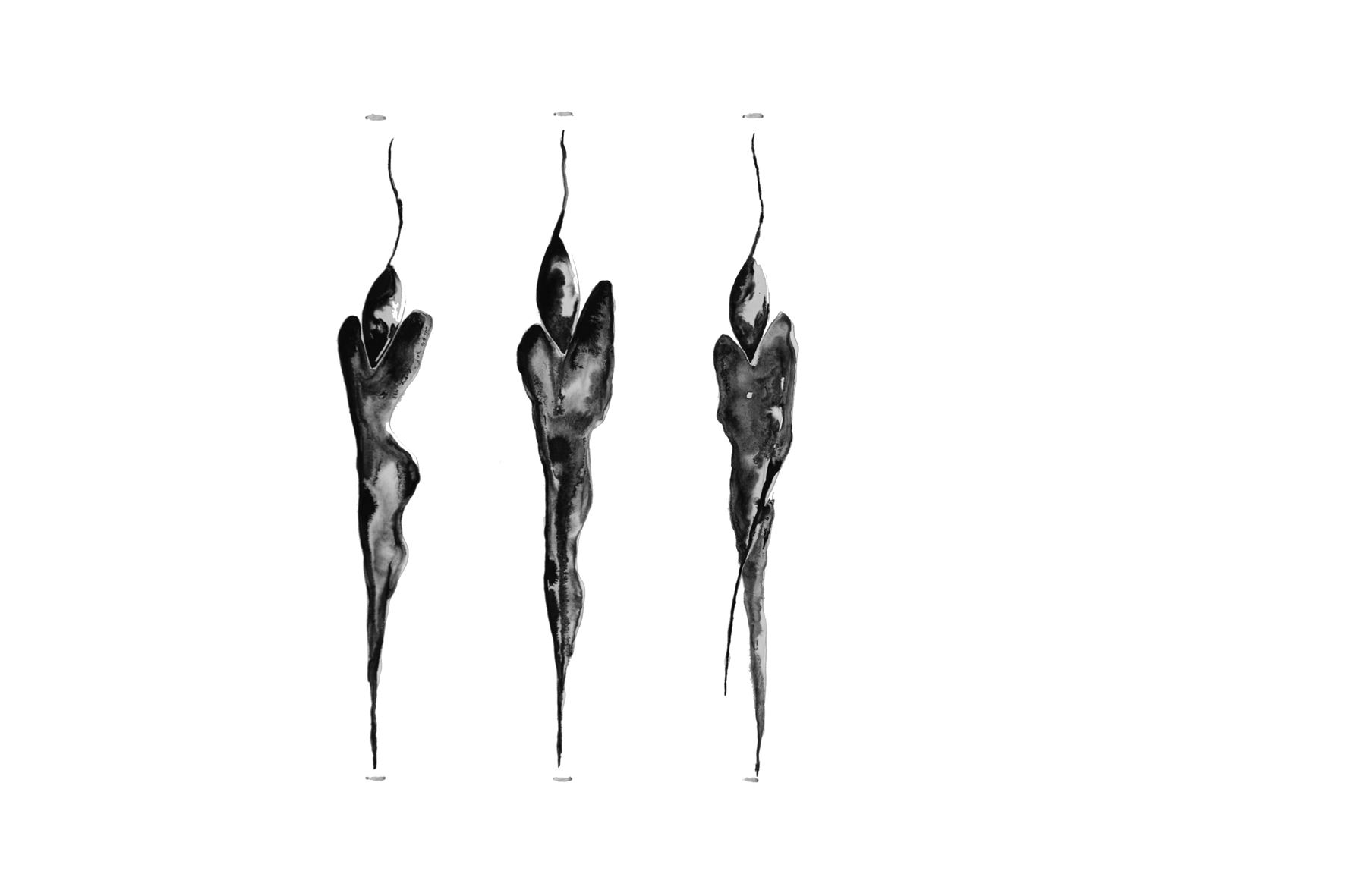 Dalla forma quasi umana, impalpabili come garza, gli esseri, creati da Beluardo, appartengono ad un mondo fatto di acqua e inchiostro.