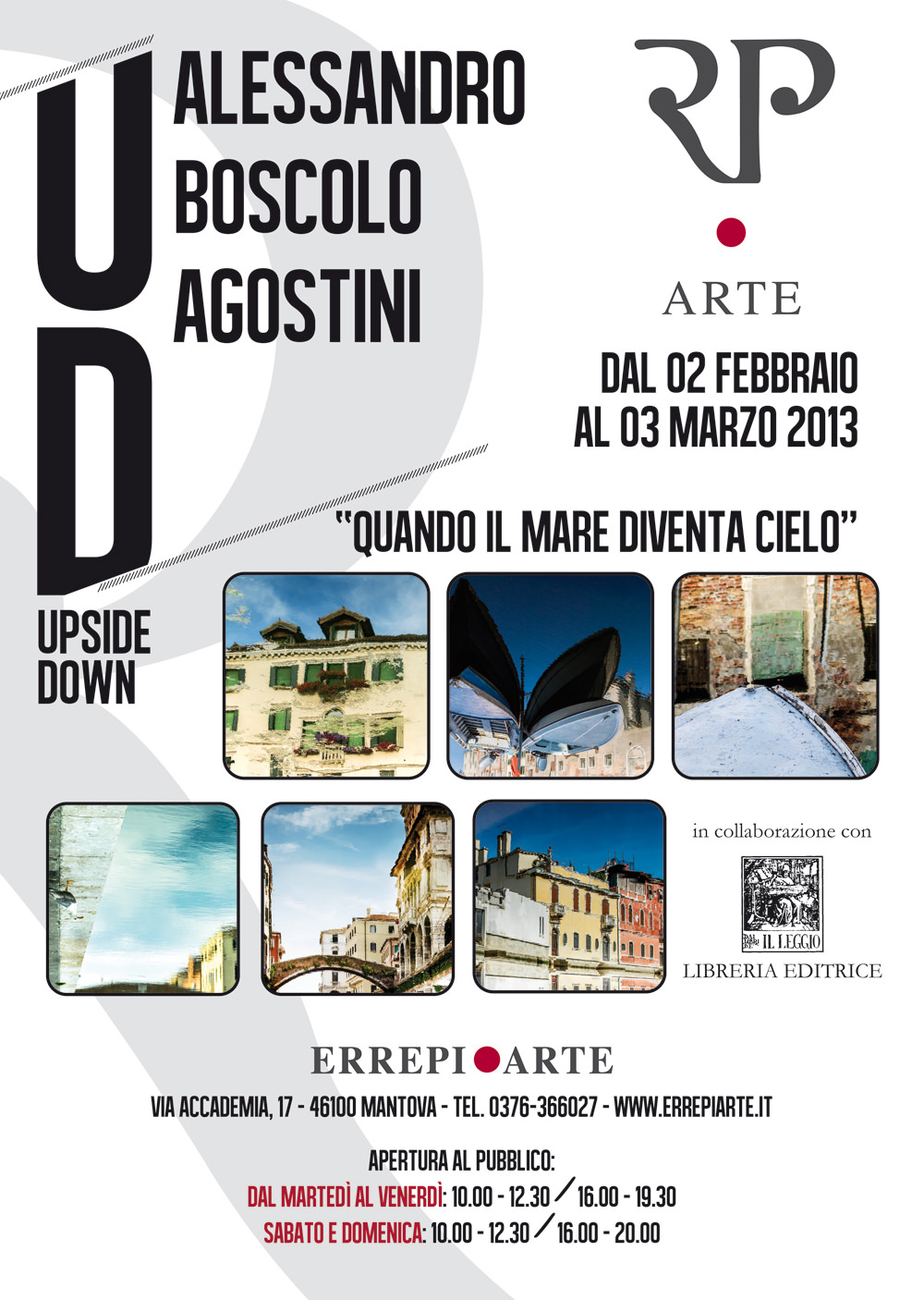 La mostra “Upside-Down Sottosopra” sarà inaugurata sabato 2 febbraio alle ore 17.00 negli spazi della Galleria Errepi Arte di Mantova che, per l’occasione, si aprirà alla luce della laguna presentando una ventina di scatti stampati in altissima definizione e in grande formato.