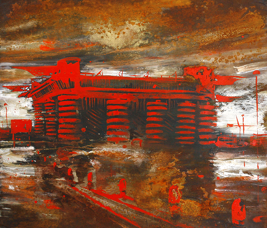 “La pittura di Alessandro Busci è giunta a una perfetta sintesi, dopo intensi anni, dapprima di apprendistato e, poi, di affinamento. Se da principio avrebbe potuto essere incardinata semplicemente nella figurazione, pur nella magmatica matericità dei supporti in acciaio corten trattati con acqua e acidi, via via essa ha assunto forme meno prevedibili e scontate. È dunque quella di Busci una figurazione che, oggi, tende sempre più all’informale, di grande potenza segnica, a tratti violenta nel gesto, dai toni decisamente espressionisti” queste le parole con il cui il curatore, Angelo Crespi introduce la mostra nel prestigioso catalogo con intervento d’artista, realizzato da De Piante Editore.