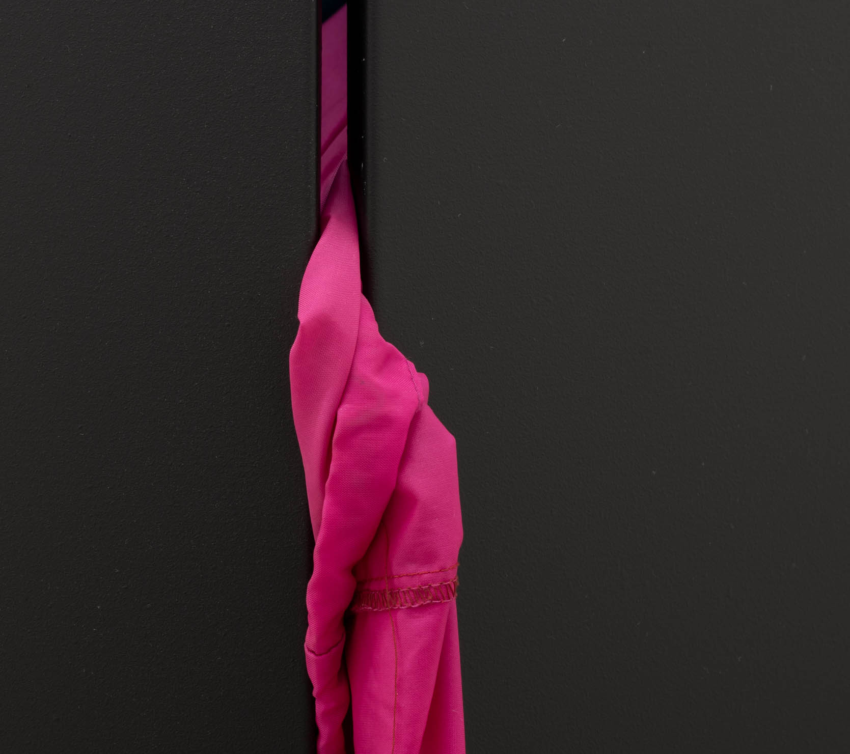 La mostra presenta una selezione di opere, corrispondenti agli esiti più recenti della ricerca dell’artista, formata da lavori appartenenti agli ultimi due anni di sperimentazione e da nuove produzioni, eseguite appositamente per questo progetto espositivo. Il titolo dell’evento rinvia al fatto che le realizzazioni esposte, caratterizzate da vuoti attraversabili dallo sguardo, inglobano oggetti, che il fruitore può intravedere o immaginare, rendendo l’interno dell’opera, dunque quanto in essa è celato o alluso, il principale agente narrativo. Così sviluppata, la sua pratica si situa al confine tecnico tra scultura e installazione, giungendo a tematizzare le nozioni – distintive dell’operato dell’autore – di soglia e di limite, fino a esplorare i dualismi di personale e impersonale, chiusura e apertura, esterno e interno, macchina e umano, di residuale e totale.