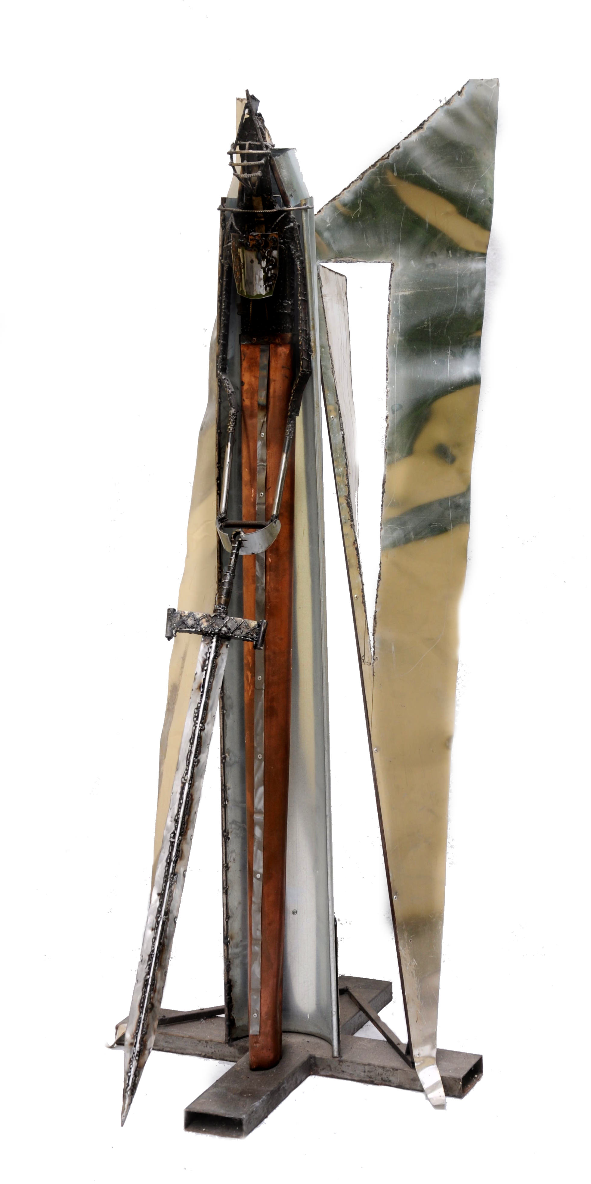 Il ferro è da sempre protagonista nelle sculture di Alessandro D’Ercole, amato per la sua stessa essenza primordiale che è consunstanziale con la sua idea di arte, costantemente in bilico tra proliferazione e germinazione di segni. Usa il ferro in quanto materia dalla finitura barbarica, attrattore magnetico di altri elementi metallici, sostanza plasmabile e riciclabile all’infinito, simbolo di forza e portanza, cui D’Ercole dona una consistenza leggera e instabile.