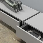 La mostra Animal Hazard, a cura di Matilde Galletti, è organizzata, per la prima volta rispetto alle mostre degli anni passati, in due differenti location che ospitano i due ‘capitoli’ di questo percorso espositivo: Capitolo I – Post Lux e Capitolo II – Famiglio. Ogni magia richiede un sacrificio. All’interno dell’area archeologica sotterranea di Palazzo Matteucci, sede storica della Cassa di Risparmio di Fermo, è ospitato il Capitolo I – Post Lux, che prevede la presenza di opere di Alessandro Di Pietro affiancate da due interventi di un artista importante e di livello come Mario Airò. Legati da forte stima e amicizia, i due artisti hanno deciso di intervenire in questi ambienti così particolari andando a rafforzare il senso di antichità e resti di civiltà ‘cadute’ attraverso la collocazione di una struttura in tubi innocenti che sosterrà un’opera in ceramica di circa tre metri (Di Pietro) e una proiezione laser (Mario Airò) nella prima stanza, nella quale si trovano i maestosi resti delle mura esterne del Teatro Romano di Fermo. Nell’ambiente successivo, saranno ‘appoggiate’ due piccole sculture di Alessandro Di Pietro, come se fossero ‘cadute’ lì da un passato lontano o un futuro prossimo, e ne galleggeranno, sospese nell’aria, altre due di Mario Airò.