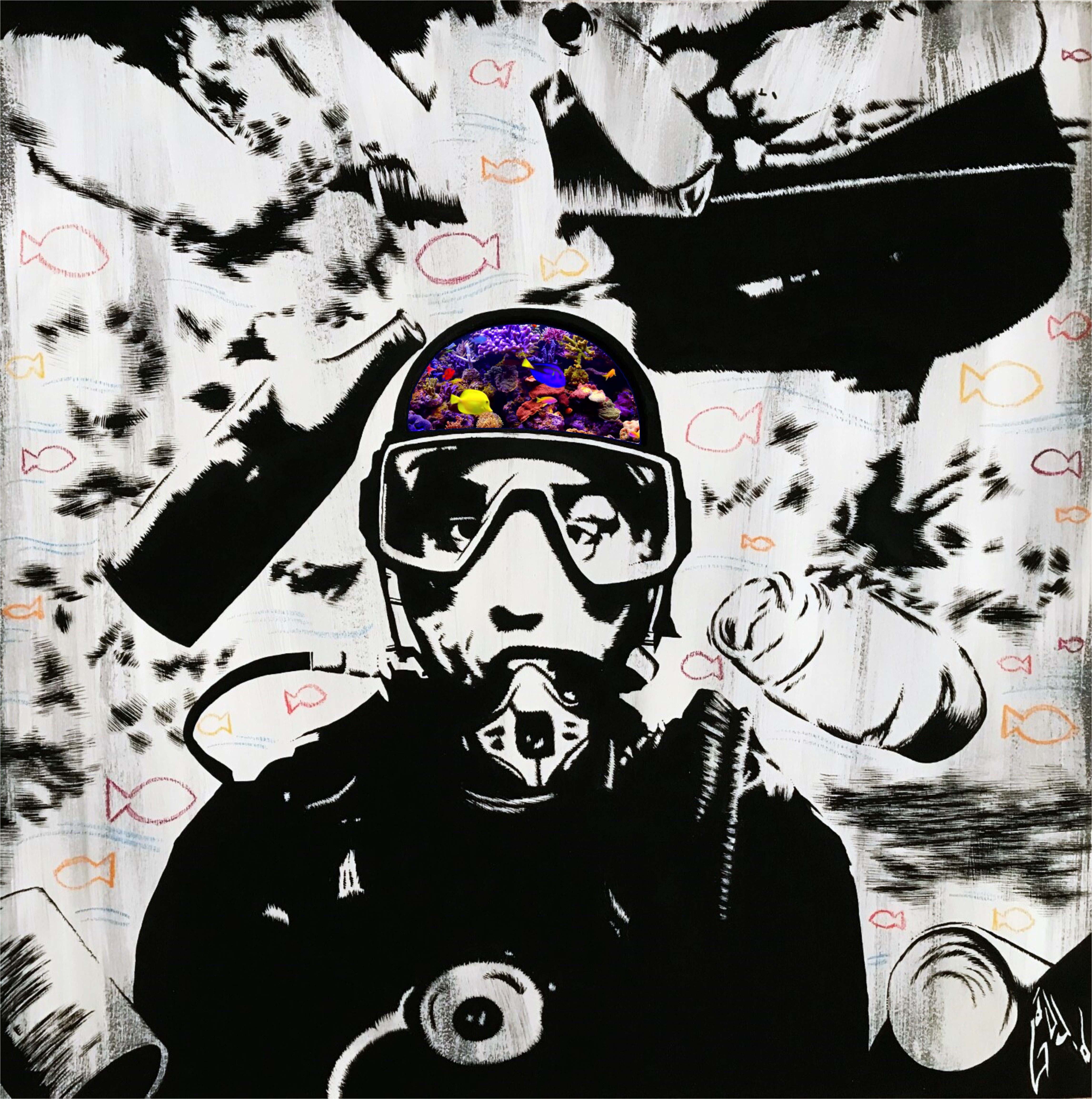 Il progetto site-specific di Alessandro Di Vicino Gaudio rappresenta per l’artista un momento di rielaborazione della critica sociale portata avanti dal 2015. La condanna della società massificata è sempre stata promossa da Gaudio tramite un’intersezione dei media ad essa più vicini: il video e la street art. Nel progetto elaborato per la home gallery, i dipinti plurimediatici dell’artista si caricano di un ulteriore significato, spontaneo quanto pro-positivo. All’acrilico e ai monitor con cui l’artista ha sempre lavorato si aggiungono adesso il pastello e le stampe in 3D che promuovono un’Idea ecologica, empatica e collettiva dell’uomo e del suo rapporto col mondo.