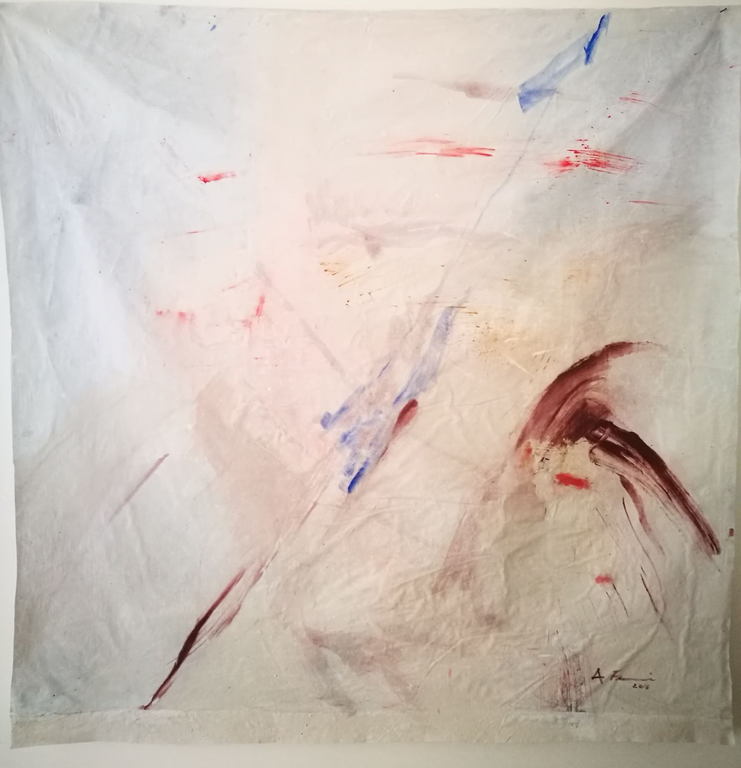Oli, terre e tecnica mista su tele di piccole e grandi dimensioni attraverso i quali l’artista, smaterializzata e dissolta la forma nel colore, spinge il proprio sguardo oltre la semplice visione, rievocando sensazioni lontane nel tempo e nello spazio eppure ancora presenti.